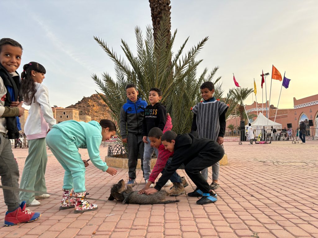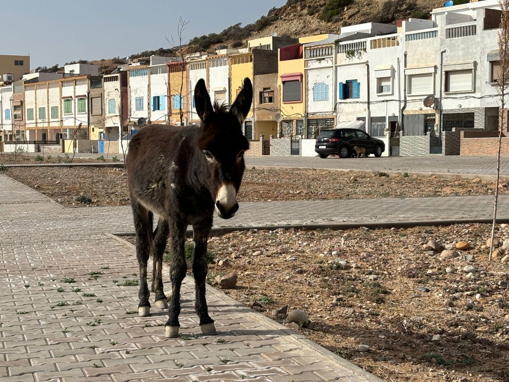 Overal in Marokko heb je veel straathonden, maar normaal zijn ze lief en vriendelijk. Hier waren ze veel agressiever. ‘ ‘s Avonds draaide de wind en kwam deze van zee af, dat bracht eindelijk wat verkoeling, waardoor je iedereen in actie zag komen. Ook wij konden eindelijk even een rondje door het dorpje lopen. Het strand zag er helaas niet zo mooi uit. De regen van de vorige week had een hoop rotzooi uit de rivieren de zee in gebracht en de zee leek alles op het strand van Tafedna uit te hebben gespuugd. Het strand was bezaaid met hout, plastic, kapotte schoenen etc.
