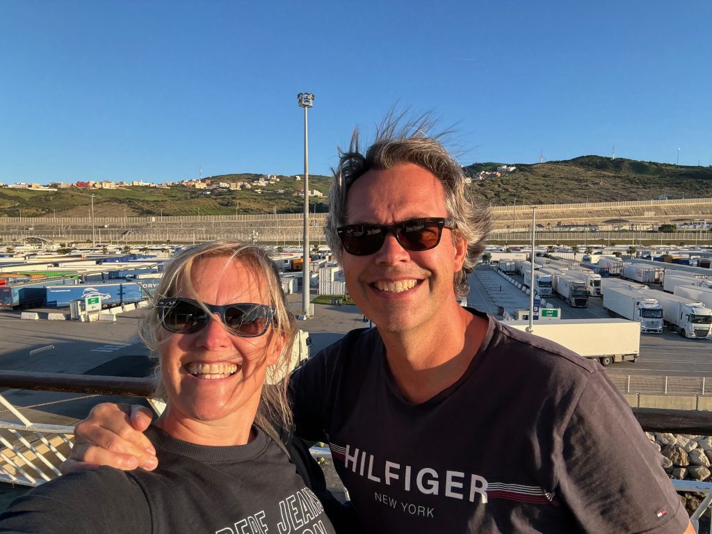 De haven van Algeciras is op 5km afstand van de supermarkten, dus ideaal als je een vroege vaart hebt. De wekker ging om 5u en om 8u vertrok de ferry naar Tanger Med.