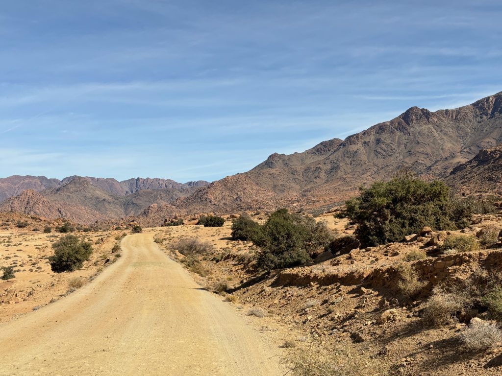Van Ouarzazate naar Tafraoute is een lange weg, dus we maakten een tussenstop op een camping in Taiouine. Tussenstops op campings vinden we heerlijk, aangezien we dan ongestoord kunnen genieten van een warme douche. Als we onderweg zijn, dan wordt het ongezien douchen wat lastiger en een douche is dan vaak een uitdaging.