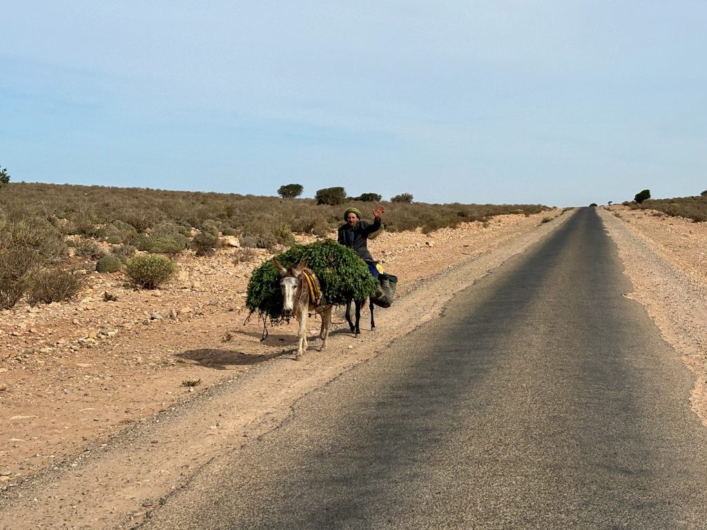 We vertrokken uit Sidi Ifni na afscheid genomen te hebben van al onze nieuwe vrienden. Op zo’n camping leer je al snel veel mensen kennen want iedereen loopt de hele dag langs of je komt ze in het toiletgebouw tegen of ergens op straat. Toen we vertrokken van de camping wisten we nog niet waar we heen zouden gaan, maar we wisten dat Jelle en Jannie iets verderop stonden bij een Parapente plek.